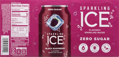 Sparkling Ice Calories and Nutrition Information. Page 1 Calories Apple Cider Flavored Sparkling Water. 1 bottle : 5: Apple Cider Hard Seltzer. 1 can : 80: Black Cherry Flavored Sparkling Water. 1 bottle : 5: Black Raspberry Beverage. 1 can : 5: Black Raspberry Flavored Sparkling Water. 8 fl oz : 0: Black Raspberry Sparkling Mountain Spring Water. 8 fl oz : 0: Black Raspberry Sparkling Water. 1 ...