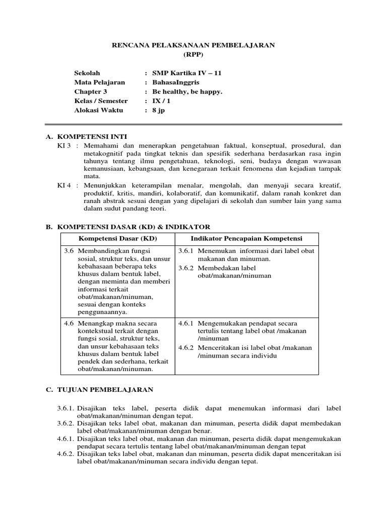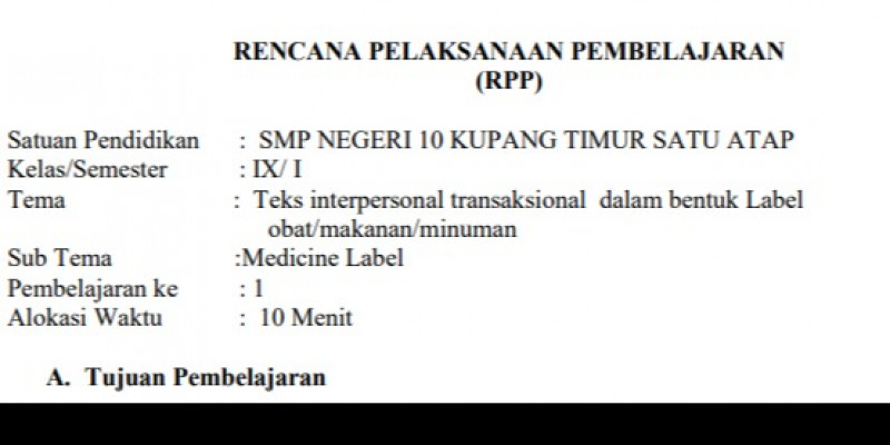 GURU BERBAGI | RPP 10 MENIT TEKS LABEL KELAS 9 (BAHASA INGGRIS)