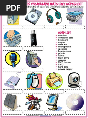 Computer Parts ESL Vocabulary Worksheets - englishwsheets.com A fun esl printable dominoes game for kids to study, learn and practise computer parts vocabulary. Just print them, cut out the domino pieces from the worksheet and play. You can also have them laminated for long term use. An effective game for both small and large groups in the classroom. (A set of 16 domino pieces) Computer Parts Labeling Activity - 6 Worksheets - Teachers Pay Teachers Description. This resource contains 6 worksheets for students to label the exterior parts of a computer, internal parts of a computer, basic parts of a desktop and internet browser window, rear input ports on the back of a computer, keyboard symbols and command key shortcut icons. Includes an explanation guide defining the functions of each part. Computer Labeling Parts Answer Key Worksheets - K12 Workbook Worksheets are Computer parts labeling work answers, Computer parts labeling work answers, Computer parts diagram, Computer parts labeling answers, Name word bank, Computer work and answer key, Computer parts labeling work answers, Computer work and answer key. *Click on Open button to open and print to worksheet. 1. Scavenger Hunt: "Computers" Worksheet | Education World How Computers Work. Computers are a large part of many student's lives. This worksheet helps students to identify how a computer works. Printable Student Handout Worksheet. Answer Key for the work sheet. Scavenger Hunts from previous weeks.